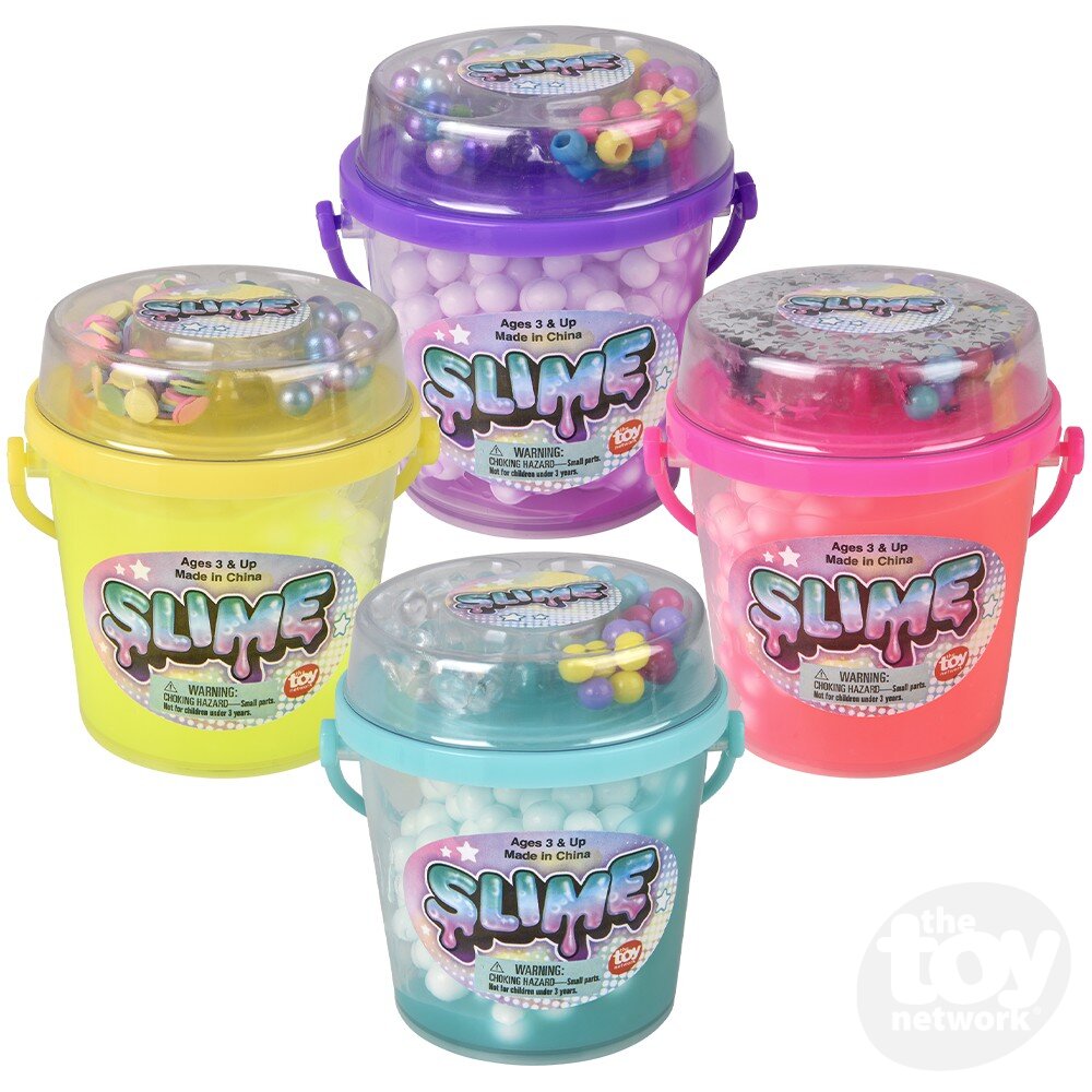 Mix in the included accessories with these bucket slimes for engaging play. Great for fidgety hands. Assorted colors.