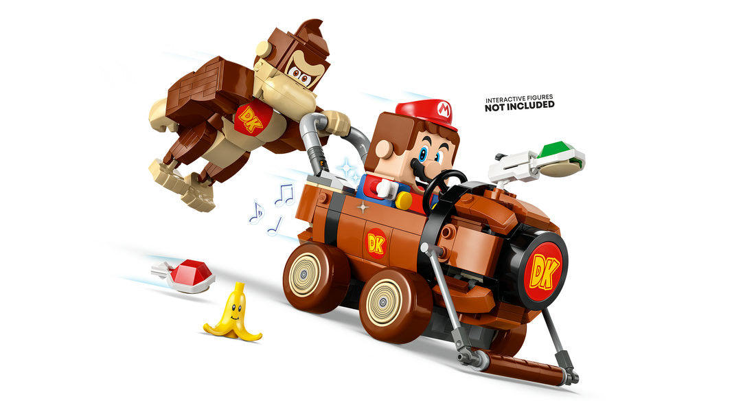 • Interactive digital play – Ride the DK Jumbo with LEGO® Mario™, LEGO® Luigi™ or LEGO® Peach™ (figures not included) to trigger Donkey Kong™ game sound/visual effects, plus other Mario Kart™ sounds