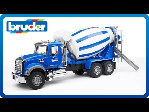 The MACK Granite Trucks are a feast for the eyes of every truck fan. The "incredibly" realistic driver's cabin features doors that can be opened, folding side-view mirrors, a tilting engine hood that provides a full view of the engine block, and the many add-on accessories which give these trucks their chrome look. The mixing barrel is operated by a fold-out crank handle (hidden in the water tank). It is also equipped with 2 slip-on chute extensions that attach to the sides of the truck and can be slipped over the rear concrete chute.