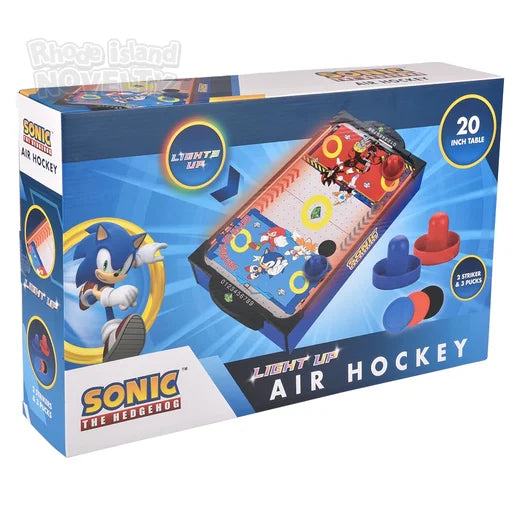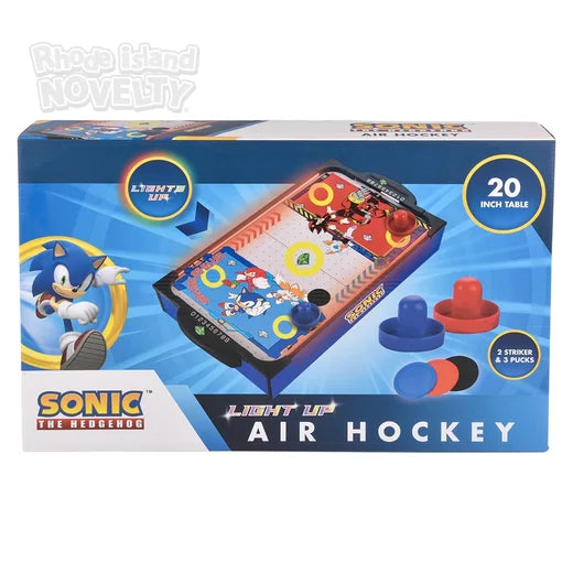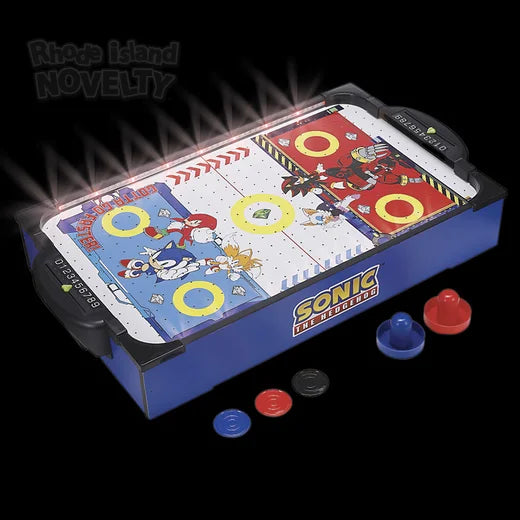 Jump into action in the brightly lit Sonic Hockey Arena! A twenty inch table, perfect for setting up on the dining room table and let the hockey game begin.