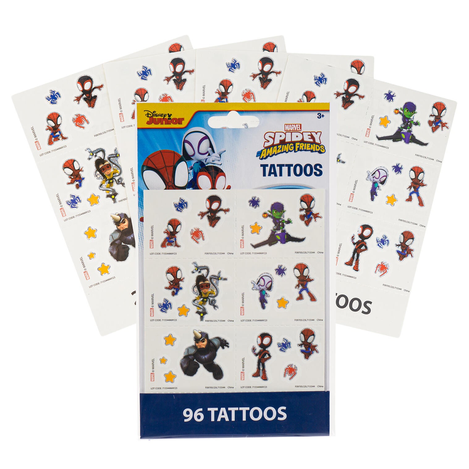 Join Spider-Man and his amazing friends in a web-slinging adventure with our Spidey and Friends 4 Sheet 96pc Tattoo Set. This collection of temporary tattoos brings your favorite Marvel heroes to life, ready to inspire your inner superhero.